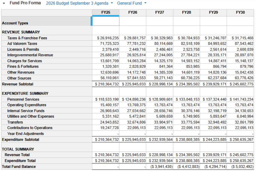 As City Manager, it is my pleasure to present the proposed balanced budget for Fiscal Year 2026 (FY26). This budget reflects our fiscal stewardship and operational excellence that supports an enhanced quality of life for Tallahassee residents. Developed in alignment with the City Commission’s priorities, this budget ensures that we are prepared to meet the present and future needs of our City – one that continues to offer a unique blend of affordability, livability, and economic strength.